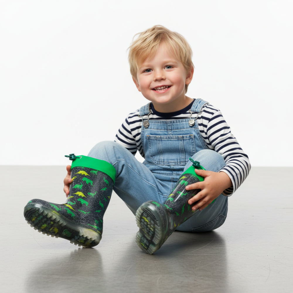 DINO gummistövlar håller små fötter torra och glada, oavsett hur många steg som tas genom regn, lera och fantasi.